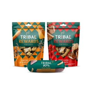 Tribal biedt koudgeperst droogvoer, natvoer met 80% vlees, natuurlijke trainingssnacks en hondensnacks, allemaal gemaakt van verse, natuurlijke ingrediënten zonder granen. Deze producten zijn hypoallergeen, ideaal voor honden met allergieën of spijsverteringsproblemen, en geschikt voor honden van alle leeftijden.